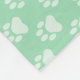 Cute dog paw prints pattern on a mint green background colour. In the middle there is a brown badge featuring a customisable monogram and name.