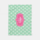 Mint Green Paw Prints And Pink Monogram & Name Fleece Blanket
