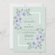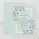 A soft mint green backdrop provides a serene base for watercolor roses in shades of lavender and dusty blue. Delicate eucalyptus leaves and silver-toned foliage add a lush, organic feel to the artwork. This romantic and ethereal aesthetic is perfectly suited for a seasonal spring or summer event.