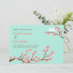 Mint Green & Pink Cherry Blossom Modern Wedding Invitation