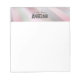 Notepad featuring a delightful design of mint green and pink stripes, creating a visually appealing pattern. The notepad also includes lettering and a name, presented in a subtle grey hue. This combination of colours and personalised details makes it a charming and practical item. The mint green and pink stripes offer a fresh and modern aesthetic, while the grey lettering adds a touch of sophistication and personalisation to the notepad's overall appearance.