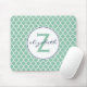 Mint green and white quatrefoil pattern with navy blue monogram.