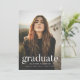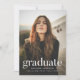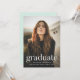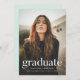 Simple graduation party invitation featuring the graduate's vertical photo with "graduate" displayed in white modern lettering. Personalise the photo graduation party invite by adding the graduate's name, school name, and graduation year. The invite reverses to display your graduation party details with a mint green background.