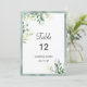 The modern botanical wedding Table Numbers invitations feature mixed watercolor greenery foliage and rustic eucalyptus olive leaves paired with a classy mint green frame. This design is ideal for a trendy and stylish party event. Customise this design with your own message and personalised information. All designs are printed.