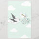 The design features a sweet hand-drawn stork a with fluffy white cloud design. The script heading is not editable. All of the other text is fully editable. For more advanced customisation of this design, simply select the "Customise It" button above.