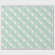 Baby shower wrapping paper featuring a pattern of storks carrying bundles of joy against a muted mint green background.