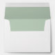 Invitation and announcement mailing envelopes with printed return address and a soft pale green stripe on the back flap and inside, designed to coordinate with eucalyptus, olive branch, and botanical themes.
