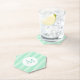 Mint Green Stripes Personalised Modern Monogram Template Trendy Hexagon Form Paper Coaster.