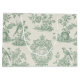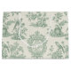 A delicate and timeless mint green toile pattern gift bag featuring elegant birds, ornate floral arrangements, and vintage-inspired decorative frames. Each element is beautifully illustrated in fine linework, creating a classic French country aesthetic. The repeating motifs include lush blossoms, vases, and perched songbirds, all set against a soft cream background that enhances its refined and graceful feel.