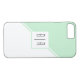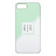 Mint green and white geometric iPhone 8/7 Case with monogram. The front includes two diagonal stripes one mint and one white that separate the card in two triangles. A white square is on the centre with your monogram.