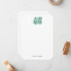 Modern illustration of hand lettered "hello" over light teal or sage green watercolor splotch, personal stationery. Individual sheets. Name at bottom are optional. Die cut optional. You can also change the backer colour.