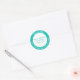 Mint green and white wedding favour stickers, with custom text going around the outer edge and in the middle. Personalise all the text fields for your wedding.