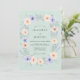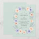 This design showcases a serene mint green background enveloped by a flourishing watercolor floral arrangement. Soft peach and lavender anemone blossoms are nestled among delicate greenery and sprigs of lavender. The airy and romantic aesthetic perfectly captures the essence of a fresh spring or meadow-themed occasion.