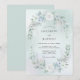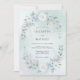 This design features a frosty palette of mint green and pale blue, perfect for a winter event. Delicate white roses and blue hydrangeas are nestled among sage green eucalyptus leaves. Sparkling light accents create a magical, ethereal atmosphere that feels like a crisp morning. The soft watercolor textures add a romantic and whimsical touch to the botanical display.