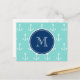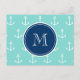 Mint Green White Anchors, Navy Blue Monogram Postcard