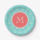 Mint Green White Anchors Pattern, Coral Monogram Paper Plate