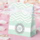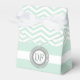 Mint green, white chevron zigzag pattern monogram wedding favour box featuring a chevron or zigzag pattern and your initials in a grey round frame with dots on a white stripe along the bottom part. This monogrammed trendy and cute girly favour box is perfect for other special occasions too such as bridal showers, birthday parties, baby showers etc.