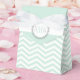 Mint green, white chevron zigzag pattern wedding favour box with initials and monogram, featuring a chevron or zigzag pattern and a soild mint green colour on the upper with a white stripe and a grey branch wreath frame. This trendy and cute girly monogrammed favour box is perfect for other special occasions too such as bridal showers, birthday parties, baby showers etc.