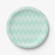 Mint Green White Geometric Chevron Pattern Paper Plate