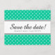 Mint green & white polkadot save the date postcard