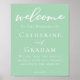 This soft mint green wedding poster features chic white typography for a sweet spring outdoor ceremony. Simple and elegant script on a tranquil solid pastel green print for garden reception decor.