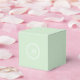 A personalised favour box in mint green featuring a white laurel wreath and custom monogram that you can edit with your own monogram. To change the font or if you need to re-centre the monogram after changing it, select the "customise it" button. This favour box makes a nice choice for receptions, parties, corporate events, and more.