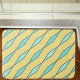 A modern geometric pattern bath mat of yellow, mint green and black zigzag stripes that crisscross diagonally across this bath mat in stripes of diamonds. It is a bright, bold and funky design. Coordinating shower curtain available.