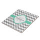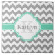 A stylish modern grey chevron zigzag pattern with an elegant, bright mint green and white quatrefoil nameplate featuring a customisable name and custom monogram. This cool, geometric, fashionable, popular zig zag pattern and personalised name / monogrammed nameplate will make a thoughtful gift for a girly girl that loves chic classy patterns with a pop of colour.