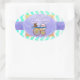 Mint Ice Blue Chevron Patteryn Baby Oval Sticker