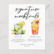 Elegant afternoon mocktails menu sheet for your non-alcoholic wedding bar or summer pool party. Cute drawings of two refreshing drinks, a Mint Julep and a Summer Sunrise. Personalise with your name or event.