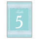 Mint lace wedding table number cards
