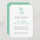 Elegant light mint-green nautical floral anchor illustration over white customisable background, birthday party invitation template with reversed colours of mint-green and white on opposite side