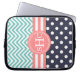 Mint, Navy & Coral Chevron Polka Dots Personalised Laptop Sleeve