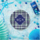Shades of Mint, Navy Blue and White Preppy Madras Style Plaid Pattern Navy Blue Quatrefoil Monogram