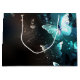 Mint night glowing butterflies on black abstract background.