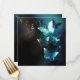 Mint night glowing butterflies on black abstract background.