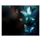 Mint night glowing butterflies on black abstract background.