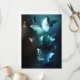 Mint night glowing butterflies on black abstract background.