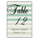 Mint, Pale and White Stripes table number card with an elegant vintage look