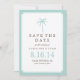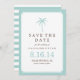 Stylish save the date announcements perfect for a summer or tropical destination wedding feature a beautiful illustration of a palm tree and an elegant nautical stripes pattern on the back. Visit our store for more colour options and matching products.