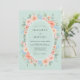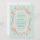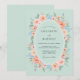 This design features a serene mint green background adorned with a lush arrangement of watercolor peach roses and delicate light blue blossoms. Sprigs of silvery eucalyptus and green foliage create a soft, romantic atmosphere perfect for a seasonal event. The palette balances warm coral tones with cool seafoam and sky blue for a timeless aesthetic.