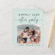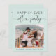 Budget-friendly light mint green elopement or private wedding announcement and reception invitation featuring your photo, "Happily Ever After Party" in simple typography and a stylish script with swashes and your first names and wedding date. On the reverse side, input your wedding website URL address to create a QR code for guests to scan for all the details and to RSVP online, personalise your announcement and reception details and add your names in a signature-like script.