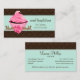 © 2013 Socialite Designs. Our couture cupcake bakery business card design has an elegant cupcake, flourish and a pink rose. A perfect business card for a bakery business or event catering business such as dessert tables. Personalise this cupcake bakery business card with your information. Colours are teal, pink and chocolate brown.