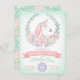 Mint Pink Cute Unicorn Birthday Party Invitations