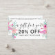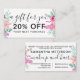 Floral watercolor gift discount card and a modern typography, with hand painted red burgundy roses, pastel pink and neon pink flowers with green and brown leaf and branches in a botanical bouquet arrangement. An elegant script calligraphy,