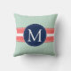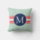 Mint Polka Dot Pattern Coral Navy Blue Monogram Cushion