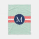 Mint Polka Dot Pattern Coral Navy Blue Monogram Fleece Blanket