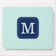 Stylish mousepad design in mint and navy blue colours, easily personalised monogram. Great mousepad for every office or home.