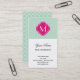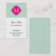 Mint Quatrefoil Pattern with Monogram Business Card
