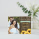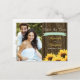 ADD YOUR FAVORITE ENGAGEMENT PHOTO TO THESE CHARMING COUNTRY AND RUSTIC FEEL SUNFLOWER SAVE THE DATE POSTCARDS WITH A WOODEN FENCE AND/OR WOOD LOOK BARREL BACKGROUND WITH NAIL HEAD TRIM, MINT LIGHT GREEN JADE PRINTED RIBBON BANNER LOOK DESIGN AND A BOUQUET OF SUNFLOWERS AT THE BOTTOM OF THE CARD. THE BACK OF THIS POST CARD CAN BE CUSTOMIZED WITH YOUR OWN MESSAGE. THESE SAVE THE DATES COMPLEMENT A FARM, FARMHOUSE, BARN OR BARNYARD THEMED WEDDING. CONTACT THE DESIGNER, CHRISSYH@CHRISSYHSTUDIOS.COM IF YOU NEED HELP FORMATTING THE TEXT ON THE BACK OF THIS CARD. THE TEXT WILL PRINT AS VIEWED ON THE PREVIEW SCREEN. DESIGN © CHRISSY H. STUDIOS, LLC. ALL RIGHTS RESERVED.